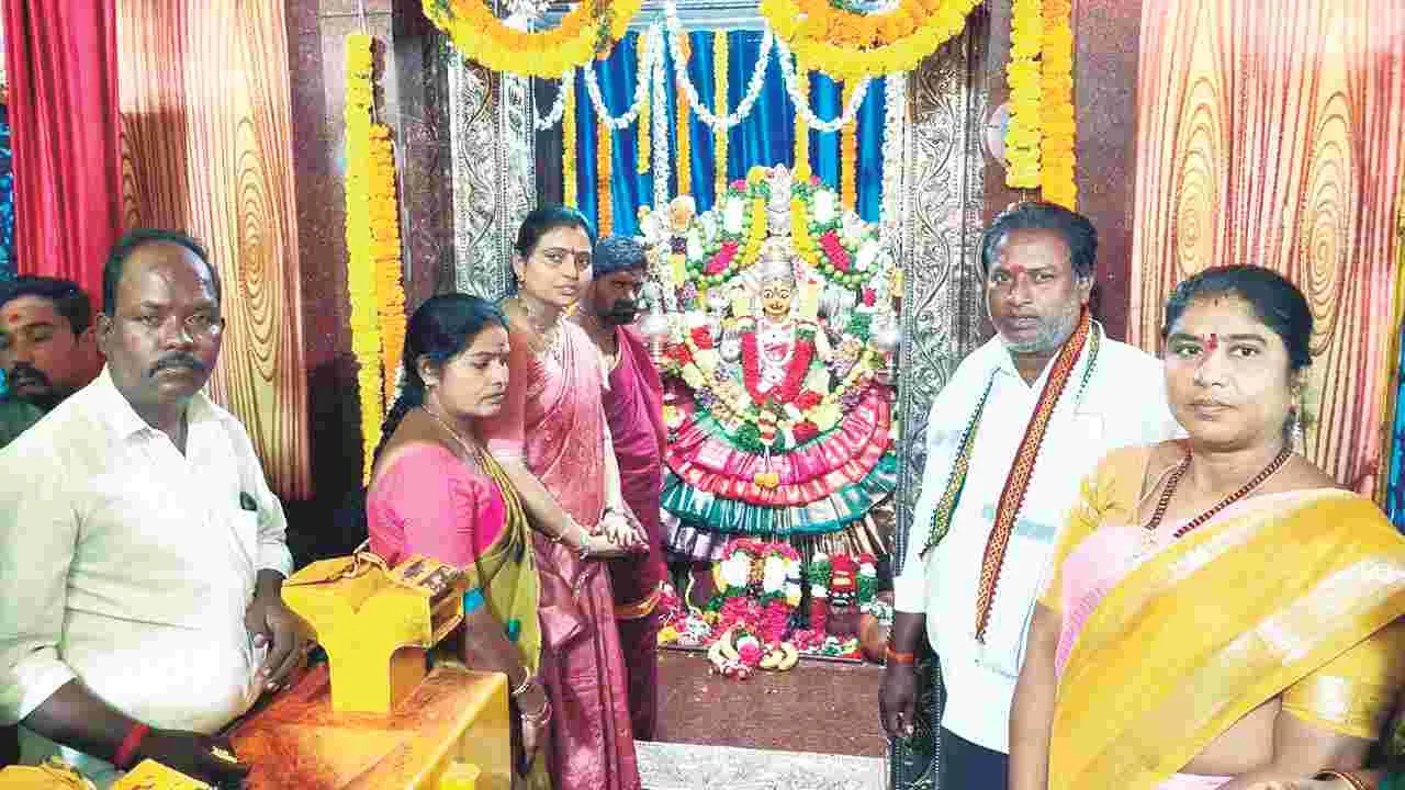 అమ్మవారిని జమ్మిచేడు గ్రామం నుంచి ఆలయం వరకు భాజా భజంత్రీలు, డప్పువాయిద్యాలతో పాటు డీజేతో కళాకారుల నృత్య ప్రదర్శనలతో శోభాయాత్ర సాగింది. గ్రామంలో అమ్మవారికి హారతులు పడు తూ పూజలు చేస్తుండగా మరోవైపు కళాకారుల నృత్యాలు గ్రామస్థులను ఆకట్టుకున్నాయి. దాదాపు 5 గంటల పాటు గ్రామం నుంచి ప్రధాన రోడ్డు వరకు ప్రదర్శనలు చేశారు. రెండేళ్లుగా శోభాయాత్ర సందర్భంగా దాదాపు వంద మంది కళాకారు లు, డప్పు వాయిద్యా లు, డీజేతో ఎంతో హం గామాగా ని ర్వహిస్తూ వ స్తున్నారు. ఈ ఏడాది హైదరాబాద్కు చెం దిన కళాకారుల బృందం బేతెల్, పోతురాజులు, శివసత్తుల విన్యాసాలతో ఆకట్టుకు న్నారు. కాగా భాజా భజంత్రీలతో ఎద్దుల బండిపై ఆలయానికి చేరుకున్న అమ్మవారికి ఎమ్మెల్యే సతీమణి బండ్లజ్యోతి, ఆలయ మాజీ చైర్మన్ వెంకట్రాములు, ఈఓ పురేందర్కుమార్లు ఆహ్వానం పలికి ప్రత్యేక పూజలు చేశారు. అనంతరం ఆలయంలో అమ్మవారిని ఆశీనులు చేశారు. ఆదివారం పౌర్ణమిన ప్రత్యేక పూజలందుకొని ఐదు నె లల పాటు కోరిన కోరికలు తీర్చే తల్లిగా కొ లుస్తారు. కాగా అమ్మవారి శోభాయాత్రలో గత ఏడాది జరిగిన గొడవను దృష్టిలో పె ట్టుకొని ఎస్ఐ శ్రీకాంత్ ఆధ్వర్యంలో బందోబస్తును నిర్వహించారు. సీఐ టంగుటూరు శ్రీను పర్యవేక్షించారు. అమ్మవారికి సీఐ, ఎస్ఐ పూజలు నిర్వహించారు.