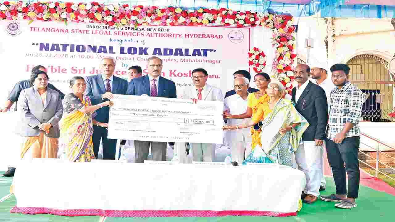 పాలమూరు యూనివర్సిటీ, మార్చి 28 (ఆంధ్రజ్యోతి): పెండింగ్ కేసులను పరిష్కరించుకోవాలని హైకోర్టు న్యాయమూర్తి, రాష్ట్ర న్యాయసేవాధికార సంస్థ ఎగ్జిక్యూటివ్ చైర్మన్ సి.సామ్కోషి అన్నారు. శనివారం జిల్లా కోర్టు ఆవరణలో ఏర్పాటు చేసిన జాతీయ లోక్ అదాలత్ కార్యక్రమాన్ని ఆయన ముఖ్య అతిథిగా హాజరై హైకోర్టు న్యాయమూర్తి ఎన్వీ శ్రావణ్ కుమార్, జిల్లా ప్రధాన న్యాయాధికారి ప్రేమలతతో కలిసి ప్రారంభించారు. ఈ సందర్భంగా ఆయన మాట్లాడుతూ జాతీయలోక్ అదాలత్ను వినియోగించుకొని ఇరుపక్షాలు పరస్పర సమ్మతి, అంగీకారంతో వివాదాలను శాంతియుతంగా పరిష్కరించుకోవాలన్నారు. కోర్టుల్లో పెండింగ్లో ఉన్న సివిల్, మోటారు ప్రమాద ఇన్సురెన్స్, బ్యాంక్ రుణాలు, చెక్బౌన్స్, కుటుంబ వివాదాలు వంటి అనేక కేసులను లోక్అదాలత్ ద్వారా రాజీ మార్గమే రాజమార్గమని పరిష్కరించుకోవాలన్నారు. లోక్అదాలత్లో ఇచ్చే తీర్పులు చట్టబద్ధమైనవని, అవి సివిల్ డిక్రీకి సమానమని చెప్పారు. అంతకుముందు హైకోర్టు న్యాయమూర్తి ఎన్వీ శ్రావణ్ కుమార్ మాట్లాడుతూ లక్అదాలత్ ప్రధాన ఉద్దేశం ప్రజలకు సులభంగా, వేగంగా అతితక్కువ ఖర్చుతో కూడిన న్యాయం అందించడమేనన్నారు. జిల్లా ప్రధాన న్యాయాధికారి ప్రేమలత మాట్లాడుతూ జాతీయ లోక్ అదాలత్ ద్వారా 2,033 కేసుల పరిష్కరానికి మహబూబ్నగర్లో 7, జడ్చర్లలో 2 బెంచీలను ఏర్పాటు చేశామని తెలిపారు. అంతకు ముందు సామ్కోషి, శ్రావణ్ కుమార్లకు ప్రేమలత, కలేక్టర్ ఖుస్బూ గుప్తా స్వాగతం పలికారు. కార్యక్రమంలో రాష్ట్ర న్యాయసేవాధికార సంస్థ కార్యదర్శి సీహెచ్ పంచాక్షరి, జిల్లా న్యాయసేవాధికార సంస్థ కార్యదర్శి ఇందిర, బార్ అసోసియేషన్ అధ్యక్షుడు అనంతరెడ్డి, న్యాయాధికారులు, న్యాయవాదులు, పోలీస్ అధికారులు పాల్గొన్నారు.