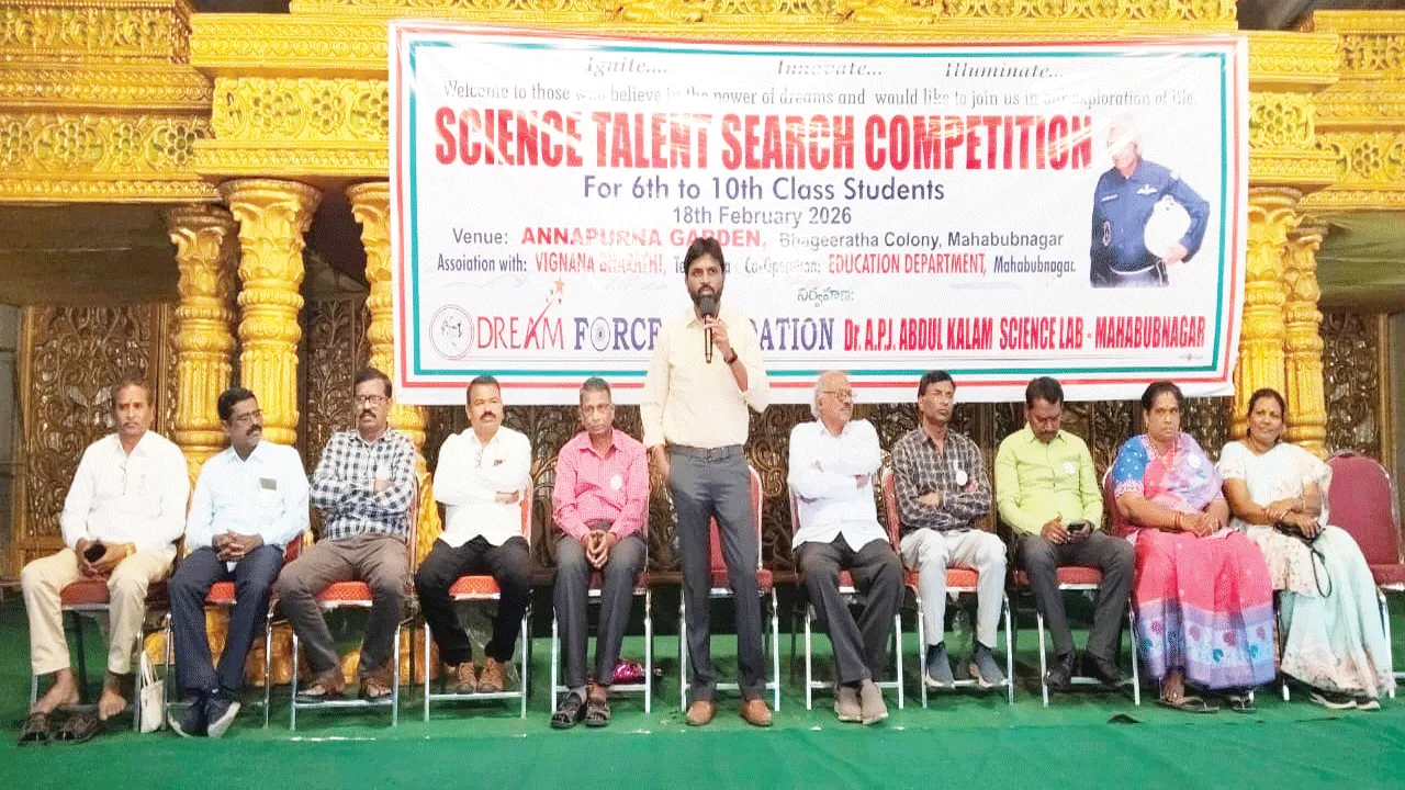 మహబూబ్నగర్ విద్యావిభాగం, ఫిబ్రవరి 18 (ఆంధ్రజ్యోతి) : సైన్స్ ద్వారానే అన్ని సమ స్యలకు పరిష్కారం దొరుకుతుందని ఏఎంవో దుంకుడు శ్రీనివాస్ పేర్కొన్నారు. బుధవారం జిల్లా కేంద్రంలోని అన్నపూర్ణ గార్డెన్లో డ్రీమ్ ఫోర్స్ ఫౌండేషన్ డాక్టర్ ఏపీజే అబ్దుల్ కలాం సైన్స్ ల్యాబ్ ఆధ్వర్యంలో జిల్లా విద్యాశాఖ సహ కారంతో నిర్వహించిన సైన్స్ టాలెంట్ కాంపిటే షన్ కార్యక్రమానికి ముఖ్యఅతిథిగా హాజరై మా ట్లాడారు. విద్యార్థులు నేటి సమాజంలో పోటీ తత్వానికి అనుగుణంగా ముందుకు సాగాలన్నా రు. దేశం గర్వించ దగ్గ గొప్ప వ్యక్తుల్లో ఒకరైన అబ్దుల్ కలాం శాస్త్రవేత్తగా గుర్తింపు పొందార న్నారు. డ్రీమ్ ఫోర్స్ ఫౌండేషన్ వ్వవస్థాపక కా ర్యదర్శి శివకుమార్, కలాం ల్యాబ్ వ్యవస్థాపక అధ్యక్షుడు టీఎన్ శ్రీధర్, అధ్యక్షుడు జానార్దన్ మాట్లాడారు. ఈ టాలెంట్ టెస్టుకు 43 పాఠశా లకు చెందిన 321 మంది విద్యార్థులు పాల్గొన్నా రు. కార్యక్రమంలో కలాం ల్యాబ్ ఉపాఽధ్యక్షుడు శ్రీనివాస్, ఆంజనేయులు, శోభారాణి, శ్రీనివాస్, బాలరాజ, గోపాలం, నర్సప్ప, అనురాధ, చక్ర వర్తిగౌడ్ పాల్గొన్నారు.