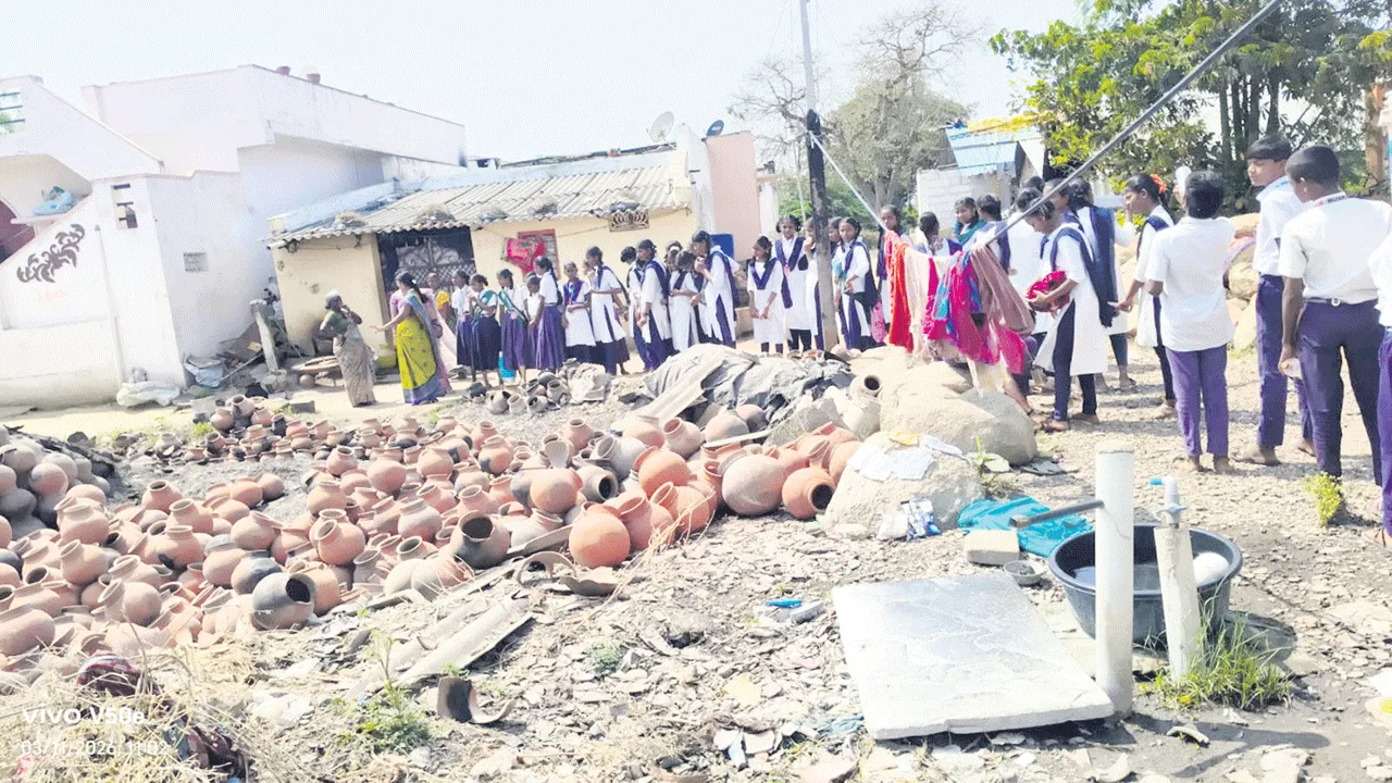 మట్టికుండల తయారీని పరిశీలించిన పాఠశాల విద్యార్థులు