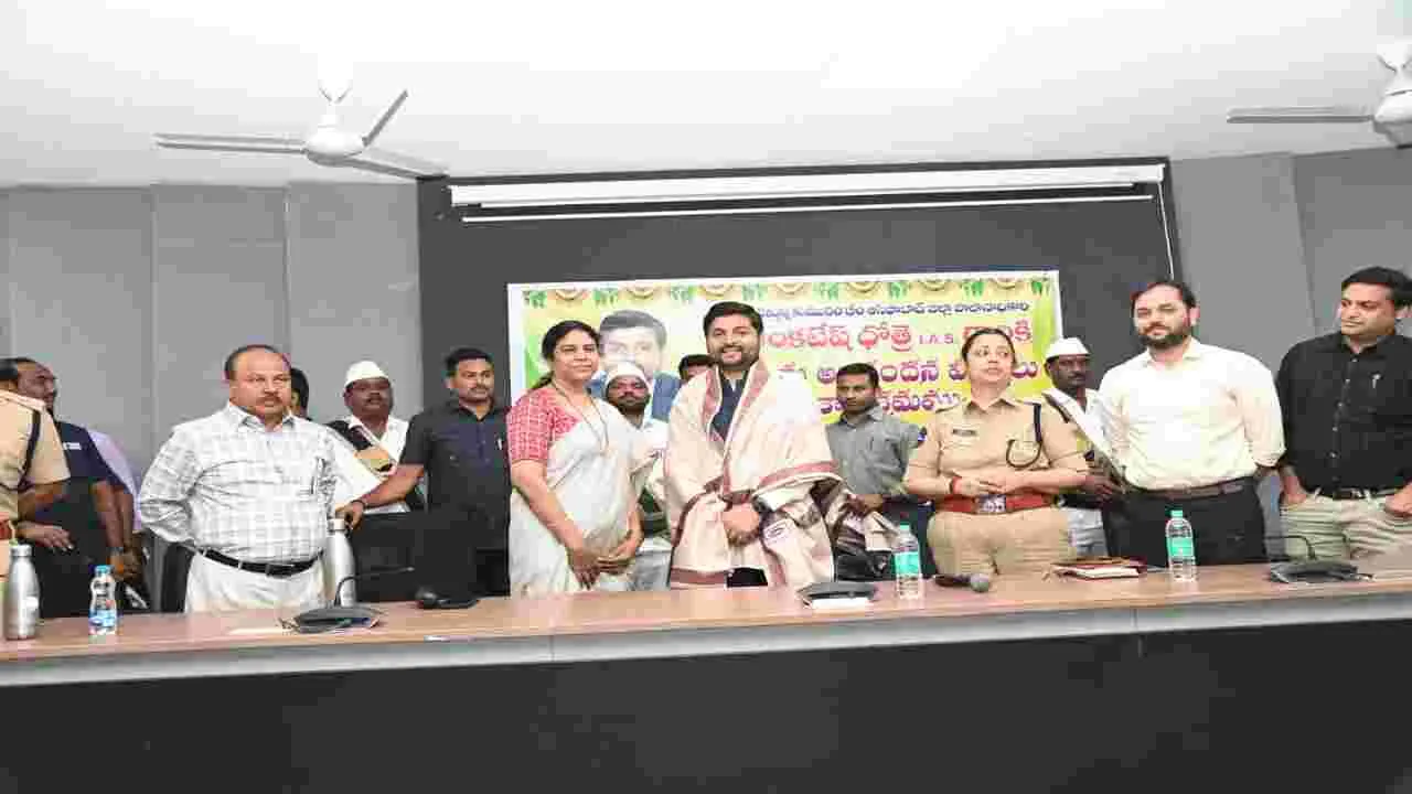 ఆసిఫాబాద్, జనవరి 23 (ఆంధ్రజ్యోతి): జిల్లా కలెక్టర్గా విధులు నిర్వహించిన వెంకటేష్ దోత్రే నీతి ఆయోగ్లో జిల్లాకు జాతీయ స్థాయిలో గుర్తింపు తీసుకు వచ్చారని ప్రస్తుత కలెక్టర్ కె హరిత అన్నారు. జిల్లా కేంద్రంలోని సమీకృత కలెక్టరేట్ భవన సమావేశ మందిరంలో శుక్రవారం విద్యా శాఖలో ప్రత్యేక కార్యదర్శిగా పదోన్నతిపై వెళ్తున్న కలెక్టర్ వెంకటేష్ దోత్రే వీడ్కోలు కార్యక్రమంలో జిల్లా ఎస్పీ నితికా పంత్, అదనపు కలెక్టర్లు దీపక్ తివారి, డేవిడ్, జిల్లా అటవీ అధికారి నీరజ్కుమార్, సబ్ కలెక్టర్ శ్రద్ధశుక్లా, అదనపు ఎస్పీ చిత్తరంజన్, ఆర్డీవో లోకేశ్వర్లతో కలిసి వెంకటేష్ దోత్రేను సన్మానించి జ్ఞాపిక అందజేశారు. ఈ సందర్భంగా కలెక్టర్ మాట్లాడుతూ జిల్లాలో జిల్లా కలెక్టర్గా పని చేసిన సమయంలో అధికారుల సమన్వయంతో నీతి అయోగ్ కార్యక్రమాన్ని మంచి ర్యాంకు సాధించి జిలాలకు గుర్తింపు తీసుకు వచ్చారని తెలిపారు. ఇదే స్పూర్తితో జిల్లాను అన్ని రంగాల్లో అభివృద్ధి చేసి ముందు వరుసలో ఉంచుదామని తెలిపారు. ఎస్పీ మాట్లాడుతూ జిల్లాలో శాంతి భత్రల అదుపులో ఉంచడంతో పాటు సర్పంచ్ ఎన్నికలు ప్రశాంతంగా జరిగేలా సమన్వయంతో పని చేశారని తెలిపారు. కలెక్టర్ వెంకటేష్ దోత్రే మాట్లాడుతూ జిల్లాలో 23 నెలల పాటు కలెక్టర్గా పని చేసిన సమయంలో అధికారులు అందించిన సహకారంతో పార్లమెంట్, శాసన మండలి, సర్పంచ్ ఎన్నికలు, భారీ వర్షాల సమయంలో ప్రజారక్షణ చర్యలు చేపట్టడంలో ఇతర సంఘటనలను నియంత్రించడంలో విజయవంతంగా పని చేశామని తెలిపారు. ఆదివాసీలకు అండగా అదికారులు పని చేయాలని, ఆసిఫాబాద్ అనే పేరు తన మనసులో చిరస్థాయిగా నిలిచి పోతుందని తెలిపారు. కార్యక్రమంలో అధికారులు, సిబ్బంది పాల్గొన్నారు.