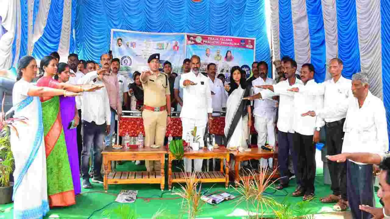 కోనరావుపేట,ఏప్రిల్ 13 (ఆంధ్రజ్యోతి): రోడ్డుపై వెళ్లే ప్రతి వాహనదారుడు సామాజిక బాధ్యతగా రోడ్డు భద్రత నియమాలు పాటించాలని ప్రభుత్వ విప్ వేములవాడ ఎమ్మెల్యే ఆది శ్రీనివాస్ పిలుపునిచ్చారు. ప్రజాపాలన-ప్రగతి ప్రణాళిక 99 రోజుల కార్యాచరణలో భాగంగా పోలీస్ శాఖ, రవాణా శాఖ ఆధ్వర్యంలో నిజామాబాద్ గ్రామంలో సోమవారం అరైవ్.. అలైవ్ కార్యక్రమాన్ని నిర్వహించగా ముఖ్యఅతిథిగా ప్రభుత్వ విప్ వేములవాడ ఎమ్మెల్యే ఆది శ్రీనివాస్, జిల్లా కలెక్టర్ గరిమ అగ్రవాల్, ఎస్పీ మహేష్ బి గితే హాజరయ్యారు. గ్రామ రోడ్సేఫ్టీ కమిటీని ఏర్పాటు చేసి గ్రామస్తులతో అరైవ్. అలైవ్పై ప్రతిజ్ఞ చేయించారు. అనంతరం ఆయన మాట్లాడుతూ యుద్ధాలు, వ్యాధుల ఇతర కారణాలతో ఎక్కువ మరణాలు జరగడం లేదని, రోడ్డు ప్రమాదాల్లోనే ఎక్కువ మంది మృతి చెందుతున్నారని వెల్లడించారు. ద్విచక్ర వాహనదారులు హెల్మెట్ పెట్టుకోవాలని, కార్లలో తప్పనిసరిగా సీట్ బెల్ట్ పెట్టుకోవా లని తెలిపారు. ట్రాఫిక్ రూల్స్ పాటించాలని సూచించారు. మైనర్లకు వాహనాలు ఇవ్వద్దని అన్నారు. భవ్యిషత్ ప్రణాళికలు రచించడమే లక్ష్యంగా ప్రజా ప్రభుత్వం ప్రజాపాలన ప్రగతి ప్రణాళిక కార్యక్ర మాన్ని అమలు చేస్తుందని తెలిపారు. రోడ్డు ప్రమాదాలతో కుటుంబాలు వీధిన పడుతున్నాయని అన్నారు. జిల్లా కలెక్టర్ గరిమ అగ్రవాల్ ప్రత్యేక ప్రణాళిక, ఆచరణతో ఇందిరమ్మ ఇళ్ల నిర్మాణాలు పూర్తి అయిన జాబితాలో రాష్ట్రంలో జిల్లా మొదటి స్థానంలో ఉందని కొనియాడారు. జిల్లా కలెక్టర్ గరిమ అగ్రవాల్, జిల్లా ఎస్పీ మహేష్ బి గీతే మాట్లాడుతూ జూన్ 12వ తేదీ వరకు వివిధ శాఖల ఆధ్వర్యం లో జిల్లావ్యాప్తంగా కార్యక్రమాలు నిర్వహిస్తున్నామని తెలిపారు. గ్రామ పంచాయతీలు, మున్సిపాలిటీల్లో ప్రత్యేక పారిశుధ్య కార్యక్రమా లు, చెత్తాచెదారం తొలగింపు పనులు చేయించామని వివరిం చారు. కార్యక్రమంలో మార్కెట్ కమిటీ చైర్మన్ కచ్చకాయల ఎల్లయ్య, వైస్ ఛైర్మన్ తాళ్ళపల్లి ప్రభాకర్, గ్రామ సర్పంచ్ శ్రీహరి, సర్పంచులు ఫోరం మండలాద్యక్షుడు బోయిని దేవరాజ్, వేములవాడ డీఎస్పీ శ్రీనివాసులు, తహసీల్దార్ వరలక్ష్మి, ఎంపీడీఓ నటరాజ్ కాంగ్రెస్ జిల్లా నాయకులు కేతిరెడ్డి జగన్మోహన్ రెడ్డి, నాలుక సత్యం, తాళ్లపల్లి ప్రభాకర్, నాయిని ప్రభాకర్ రెడ్డి, మానుక సత్యం, కె బాల్ రెడ్డి, బుర్ర రమేష్, సిద్దిరాజు, నందు గౌడ్, తదితరులు పాల్గొన్నారు.