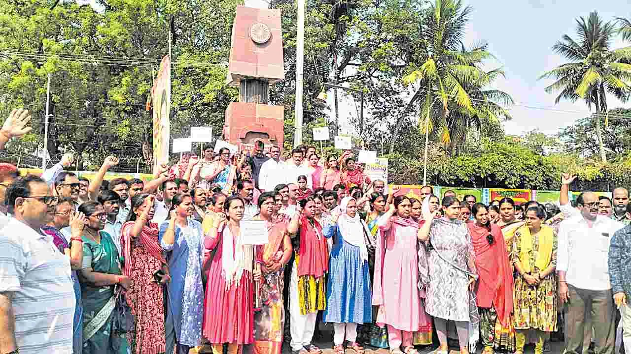 ఇంటర్నెట్ డెస్క్: ఆర్టీసీ సమ్మెపై ప్రభుత్వాన్ని ప్రశ్నించే హక్కు బీఆర్ఎస్ నాయకులకు లేదని కార్మిక సంఘాలు పేర్కొన్నాయి. గత ప్రభుత్వంలోనే యూనియన్లను రద్దు చేశారని, రెండు వేతన సవరణలు పెండింగ్లో పెట్టారని గుర్తు చేశారు. విలీన ప్రక్రియను మధ్యలోనే వదిలివెళ్లారని.. పదవీ విరమణ చేసిన వారికి బకాయిలు ఇవ్వకుండా పెండింగ్లో పెట్టింది బీఆర్ఎస్ పార్టీనేనని విమర్శించారు. బీఆర్ఎస్ అధికారంలో ఉన్నప్పుడు సమ్మె చేస్తే బెదిరింపు ధోరణిలో కార్మికులు సెల్ఫ్ డిస్మిస్ అయ్యారంటూ తిరిగి ఉద్యోగంలోకి తీసుకోలేదని ఆవేదన వ్యక్తం చేశారు. నాడు ఒక్క బీఆర్ఎస్ నాయకుడు కూడా ఆర్టీసీ సమ్మెకు మద్దతివ్వలేదని గుర్తు చేశారు. ప్రస్తుత ప్రభుత్వంలో కాంగ్రెస్ పార్టీ జిల్లా అధ్యక్షులు కూడా సమ్మెకు మద్దతుగా వచ్చారని పేర్కొన్నారు. నాడు కార్మికులు ఆత్మహత్యలు చేసుకుంటే స్థానిక బీఆర్ఎస్ నాయకులైనా పరామర్శకు రాలేదని, సంతాపం వ్యక్తం చేయలేదని గుర్తు చేశారు. ఇప్పుడు నేరుగా మంత్రి, సంస్థ ఎండీ ఆస్పత్రికి వచ్చి కార్మికుడి కుటుంబ సభ్యులను కలిశారని, తామున్నామనే భరోసా కల్పించారని టీపీసీసీ ప్రచార కమిటీ కో-ఆర్డినేటర్ కె.రాజిరెడ్డి తెలిపారు. కేంద్ర ప్రభుత్వం తెచ్చిన విద్యుత్ బస్సుల పథకంతోనే ఆర్టీసీ డ్రైవర్లు, కండక్టర్లు, శ్రామిక్, మెకానికల్ సిబ్బంది ఉద్యోగాలు కోల్పోవాల్సి వస్తోందని మండిపడ్డారు.