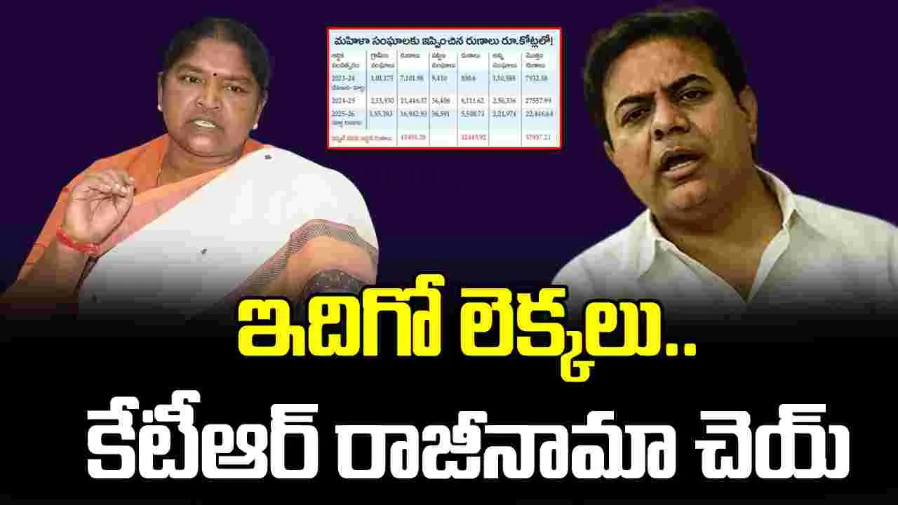 మహిళలకు రూ.57 వేలకోట్ల రుణాలిచ్చినట్లు నిరూపిస్తే.. పదవికి రాజీనామా చేస్తానన్నావు కదా.. ఇవిగో లెక్కలు.. మాటకు కట్టుబడి ఉండే వ్యక్తివైతే వెంటనే రాజీనామా చెయ్ అంటూ కేటీఆర్కు మంత్రి సీతక్క సవాల్ విసిరారు.