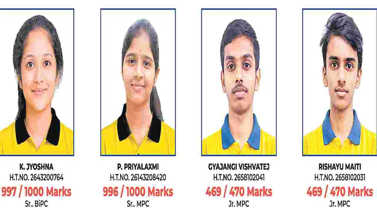 హైదరాబాద్, ఏప్రిల్ 12(ఆంధ్రజ్యోతి): ఇంటర్మీడియట్ ఫలితాల్లో తమ విద్యార్థులు రాష్ట్రస్థాయిలో అత్యధిక మార్కులు సాధించారని శ్రీచైతన్య విద్యాసంస్థలు ఓ ప్రకటన చేశాయి. సీనియర్ ఇంటర్ ఎంపీసీలో తమ విద్యార్థి పి.ప్రియలక్ష్మి 996 మార్కులు, బైపీసీలో కె.జ్యోష్న 997 మార్కులు సాధించారని, ఫస్టియిర్ ఎంపీసీలో విశ్వతేజ్ 469, రిషాయు 469 మార్కులు సాధించారని శ్రీచైతన్య అకడమిక్ డైరెక్టర్ సుష్మ బొప్పన తెలిపారు. ఇంటర్ ఫస్టియిర్లో 147 మంది విద్యార్థులు 468 మార్కులు సాధించారని, 701 మంది 467 మార్కులు సాధించారన్నారు. సెకండియర్లో ముగ్గురు 996, 16 మంది 995, 759 మంది విద్యార్థులు 990 మార్కులు సాధించారని ఆమె పేర్కొన్నారు. ప్రతి ఏటా జేఈఈ, నీట్ ప్రవేశ పరీక్షల్లోనూ తమ విద్యార్థులు సత్తా చాటుతున్నారని తెలిపారు.