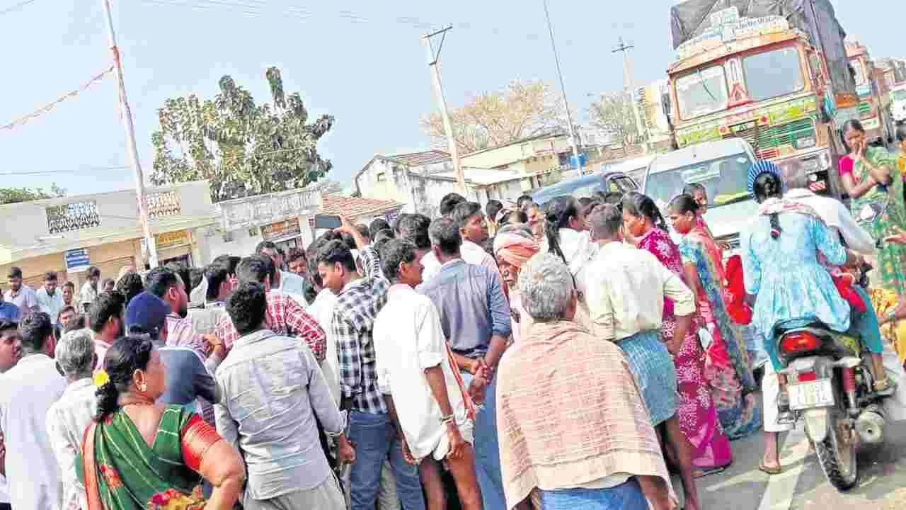 మోత్కూరు, ఫిబ్రవరి 26 (ఆంధ్రజ్యోతి): యాదాద్రిభువనగిరి జిల్లా మోత్కూరు మండలం పాలడుగు గ్రామంలో భూ తగాదాలో మహిళ గొంతు కోసి హత్యాయత్నం చేసిన నిందితులను అరెస్టు చేసి శిక్షించాలని బాధితురాలి బంధువులు, గ్రామస్థులు డిమాండ్ చేశారు. గురువారం పాలడుగులో జాతీయ రహదారిపై రాస్తారోకో చేశారు. ఈ సందర్భంగా వారు మాట్లాడుతూ బొంత వెంకటమ్మ అలియాస్ లక్ష్మీ గొంతుకోసి హత్యాయత్నం చేసిన నిందితులు బొంత అశోక్, అతని అక్కల ఇద్దరు కుమారులను అరెస్టు చేసి, కఠినంగా శిక్షించాలని డిమాండ్ చేశారు. ఈ నెల 24న మరిది అశోక్, అతని అక్కల ఇద్దరు కుమారులు కత్తితో ఆమెపై దాడి చేసి గొంతు కోయడం తో తీవ్రంగా గాయపడిన ఆమె ఆస్పత్రిలో చికిత్స పొందుతోందని తెలిపారు. ఆమె భర్త చనిపోవడం, పిల్లలు చిన్న వారు కావడంతో పోలీసులు పట్టించుకోవడం లేదని ఆరోపించారు. రాస్తారోకోతో రోడ్డుపై వాహనాల రాకపోకలు నిలిచిపోయాయి. సమాచారం తెలుసుకున్న మోత్కూరు పోలీస్ ఇన్స్పెక్టర్ వెంకటేశ్వర్లు, రామన్నపేట సీఐ వెంకటేశ్వర్లు పోలీసు బలగాలతో అక్కడికి చేరుకున్నారు. సంఘటన జరిగి మూడు రోజులు అయినా నిందితులను ఎందుకు అరెస్టు చేయడం లేదని పోలీసులను ప్రశ్నిం చారు. బాధితురాలికి న్యాయం చేయాలని డిమాండ్ చేశారు. పోలీసులు, గ్రామస్థుల మధ్య కొంతసేపు వాగ్వాదం జరిగింది. ఇద్దరు నిందితులను అదుపులోకి తీసుకున్నామని, బాధితురాలికి న్యాయం చేస్తామని సీఐలు హామీ ఇవ్వడంతో రాస్తారోకో విరమించారు. రాస్తారోకో విరమించిన అనంతరం సర్పంచ్ అంతటి భగవంతు, బాధితురాలి బంధువులు మోత్కూరు పోలీస్ స్టేషన్కు ఫిర్యాద చేసి నిందితులను కఠినంగా శిక్షించాలని, బాధితురాలికి న్యాయం చేయాలని కోరారు.