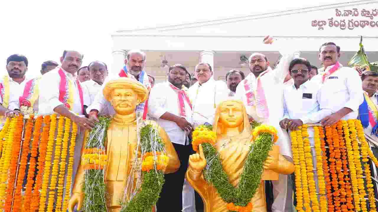 సిరిసిల్ల టౌన్, ఏప్రిల్ 11 (ఆంధ్రజ్యోతి) : మహాత్మ జ్యోతిరావుఫూలే, సావిత్రిభాయిఫూలే జీవితాలను స్పూర్తిగా తీసుకోవాలని ప్రభుత్వ విప్ ఆది శ్రీనివాస్ అన్నారు. శనివారం ముదిరాజ్ సంఘం, బీసీ, ఎస్సీ, ఎస్టీ సంఘాల సంయుక్త ఆధ్వర్యంలో జిల్లా కేంద్రం అంబేద్కర్ చౌరస్తా వద్ద మహాత్య జ్యోతిరావుఫూలే జయంతి వేడుకలను ఘనంగా నిర్వహించారు. ముందుగా మహాత్య జ్యోతిరావుపూలే దంపతుల విగ్రహానికి ముఖ్య అతిథులు ప్రభుత్వ విప్ ఆది శ్రీనివాస్, జిల్లా గ్రంథాలయ చైర్మన్ నాగుల సత్యనారాయణ, మార్కెట్ కమిటీ చైర్పర్సన్ వెల్ముల స్వరూప తిరుపతిరెడ్డి, జిల్లా కాంగ్రెస్ అధ్యక్షుడు సంగీతం శ్రీనివాస్, సిరిసిల్ల నియోజకవర్గం ఇంచార్జి కేకే మహేందర్రెడ్డి, పట్టణ కాంగ్రెస్ అధ్యక్షుడు చొప్ప దండి ప్రకాష్, బీజేపీ జిల్లా అధ్యక్షుడు గోపి పూల మాలలు వేసి నివాళులర్పించారు. అనంతరం ముది రాజ్ సంఘం జిల్లా అధ్యక్షుడు చొక్కాల రాము అధ్యక్షతన సమావేశం జరిగింది. ముఖ్య అతిథులు జ్యోతి ప్రజ్వలన చేసి, కేక్ కట్ చేసి స్వీట్లను పంపిణీ చేశారు. ఈ సందర్భంగా ప్రభుత్వ విప్ ఆది శ్రీనివాస్ మాట్లాడారు. సంవత్సరం క్రితం తాము ఇచ్చిన మాట ప్రకారం రాజన్న సిరిసిల్ల జిల్లా కేంద్రంలో మహానీయుల విగ్రహాలను నెలకొ ల్పామన్నారు. ముఖ్యమంత్రి రేవంత్రెడ్డి ప్రమాణ స్వీకారం చేసిన 24 గంటలలో ప్రగతి భవన్ను జ్యోతిరావుఫూలే ప్రజాభవన్గా మార్చారని అన్నారు. కార్యక్రమంలో కాంగ్రెస్ పార్టీ పట్టణ ఉపాధ్యక్షుడు బొప్ప దేవయ్య, బ్లాక్ కాంగ్రెస్ అధ్యక్షుడు సూర దేవరాజు, ఎస్సీ సెల్ జిల్లా అధ్యక్షుడు ఆకునూరి బాలరాజు, కాంగ్రెస్ మహిళ జిల్లా అధ్యక్షురాలు కాముని వనిత, బీసీ సంక్షేమ సంఘం రాష్ట్ర అధికార ప్రతినిధి పర్శహన్మండ్లు, ముదిరాజ్ సంఘం జిల్లా అధ్యక్షుడు చొక్కాల రాము, అంబే ద్కర్ సంఘం జిల్లా అధ్యక్షుడు కత్తెర దేవదాస్, మున్సిపల్ కాంగ్రెస్ పార్టీ ఫ్లోర్లీడర్ ఆడెపు చంద్రకళా, కౌన్సిలర్లు, మాజీ కౌన్సిలర్లు, ఎస్సీ, ఎస్టీ, బీసీ సంఘాల నాయకులు పాల్గొన్నారు.