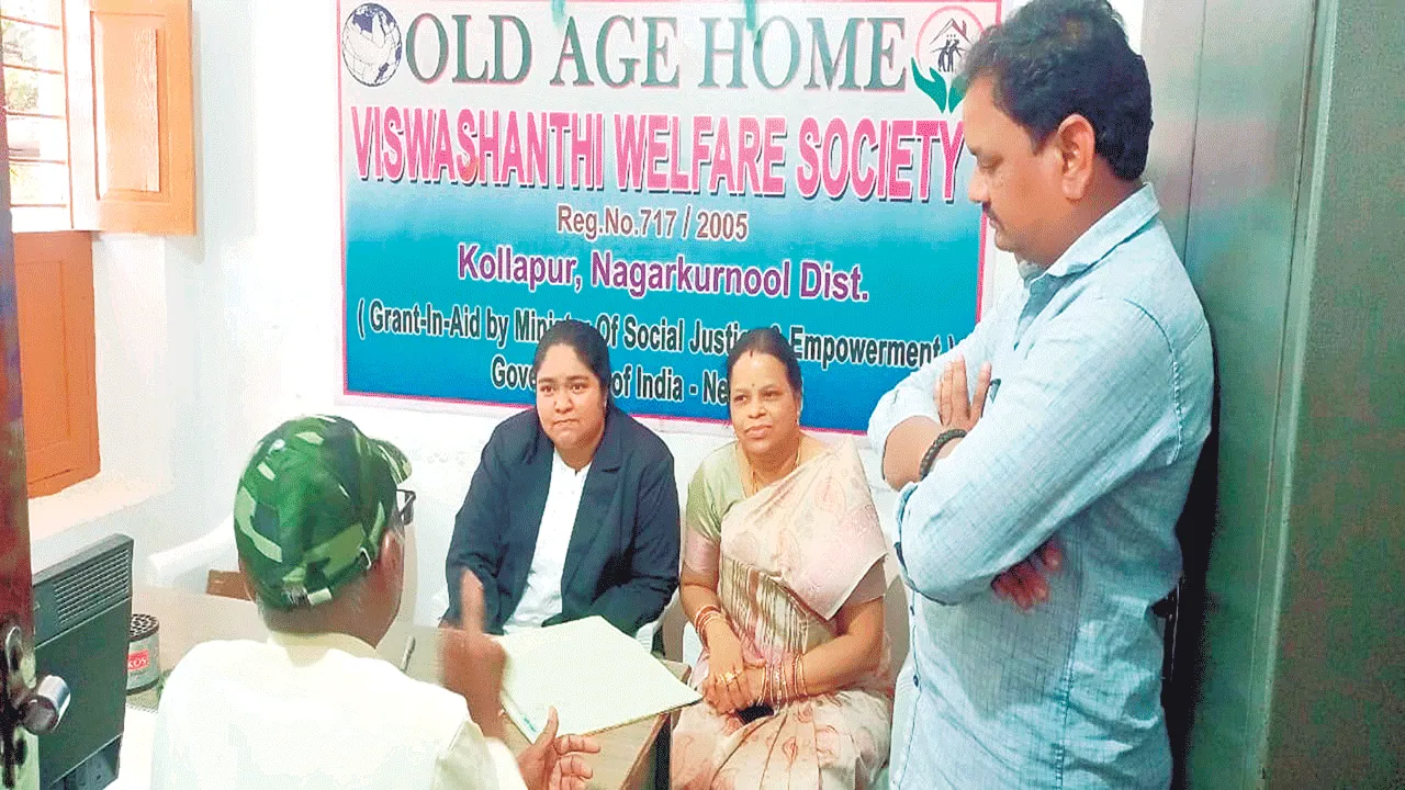 కొల్లాపూర్ నియో జకవర్గ కేంద్రంలో విశ్వశాంతి వెల్ఫేర్ సొసైటీ ఆధ్వర్యంలో ని ర్వహిస్తున్న వృద్ధాశ్రమాన్ని మం డల న్యాయ సేవాధికారర సంస్థ కొల్లాపూర్ కార్యదర్శి, జూనియర్ సివిల్ న్యాయాధికారి దమ్ము ఉప నిషధ్వాని, రెండవ అదనపు జూ నియర్ సివిల్ న్యాయాధికారి శర ణ్య ఆకస్మిక తనిఖీ చేశారు