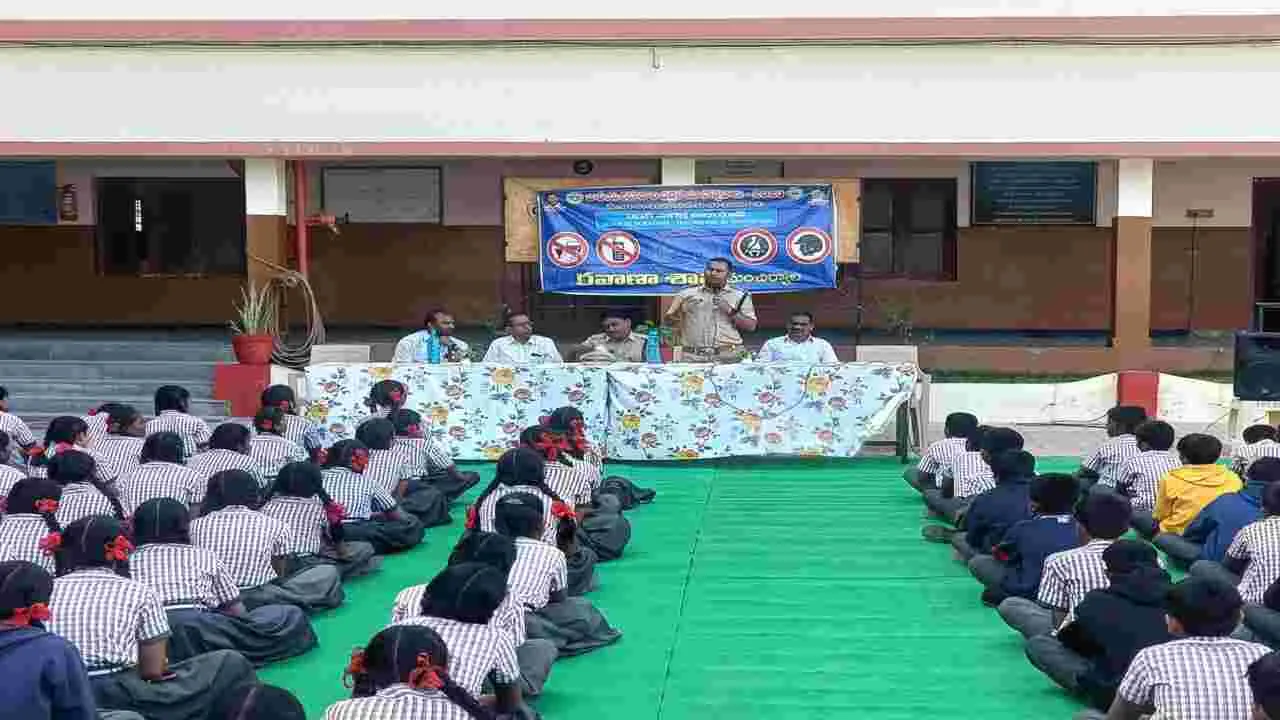 లక్షెట్టిపేట, జనవరి6 (ఆంధ్రజ్యోతి): లక్షెట్టిపేట పట్టణంలోని ట్రినిటి హైస్కూల్లో రవాణ శాఖ ఆధ్వర్యంలో అధికారులు మంగళవారం విద్యా ర్థులకు ట్రాఫిక్ రూల్స్పై అవగాహన కల్పించారు. ఈసందర్భంగా ఎంవీఐ రంజి త్కుమార్ మాట్లాడుతూ విద్యార్థులు చిన్నతనం నుంచే ట్రాఫిక్ రూల్స్పై అవ గాహన పెంచుకుంటే ఇంట్లో కుటుంబీకులను చైత న్యపరిచే అవకాశం ఉందన్నారు. రోడ్డు బద్రత మాసోత్సవాల సందర్భంగా ప్రతీ పాఠశాలల్లో కళాశాలల్లో అవగాహన సదస్సులు పెట్టడంతో పాటు విద్యా ర్థులకు ట్రా ఫిక్ రూల్స్పై డ్రాయింగ్ కాంపిటేషన్, స్పీచ్ కాంపిటేషన్ నిర్వహిస్తు బహు మతులు అంద జేస్తున్నామన్నారు. అనంతరం పాఠశాల బస్సులను తనిఖీ చేసి సంతృప్తి వ్యక్తం చేసారు. ఈకార్యక్రమంలో ఎంవీఐ కిషోర్ చంద్రారెడ్డి, పాఠశాల ప్రిన్సి పల్ జోసెఫ్, కరస్పాండెంట్ డోన్ డానెమిక్ పాల్గొన్నారు.