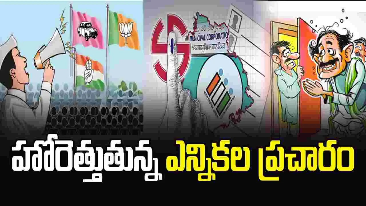 మునిసిపల్ ఎన్నికల పోలింగ్కు సమయం దగ్గరపడుతున్న కొద్దీ ప్రచారం హోరెత్తుతోంది. అభ్యర్థులు గెలుపు కోసం ఓటర్లను ఆకర్శించడానికి రకరకాల ఎత్తులు ప్రదర్శిస్తున్నారు. మైకులు, కళాకారుల ఆట పాటలతో ప్రచారాన్నిహోరెత్తిస్తున్నారు.