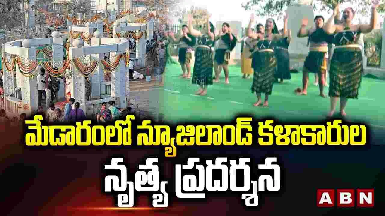 మేడారం మహాజాతర వేళ అద్భుతమైన సన్నివేశం ఆవిష్కృతమైంది. ఆసియాలోనే అతిపెద్ద గిరిజన జాతరగా పేరుగాంచిన మేడారంలో సమ్మక్క- సారలమ్మ అమ్మవార్ల గద్దెల వద్ద న్యూజిలాండ్ కళాకారులు చేసిన సందడి చేశారు..