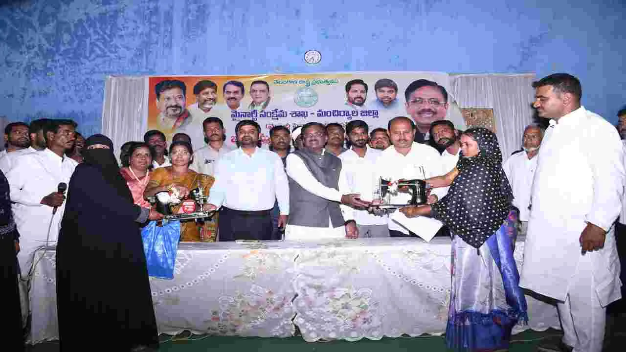 మహిళల అభివృద్ధికి ఇందిరా మహిళ శక్తి పథకం ద్వారా ప్రభుత్వం కృషి చేస్తుందని రాష్ట్ర కార్మిక, గనుల శాఖ మంత్రి వివేక్వెంకటస్వామి పేర్కొన్నారు. శనివారం చెన్నూరులోని మైనార్టీ ఫంక్షన్హాలులో ఏర్పాటు చేసిన కుట్టు మిషన్ల పంపిణీ కార్యక్రమానికి జిల్లా కలెక్టర్ కుమార్ దీపక్తో కలిసి హాజరై కుట్టు మిషన్లను పంపిణీ చేశారు.
