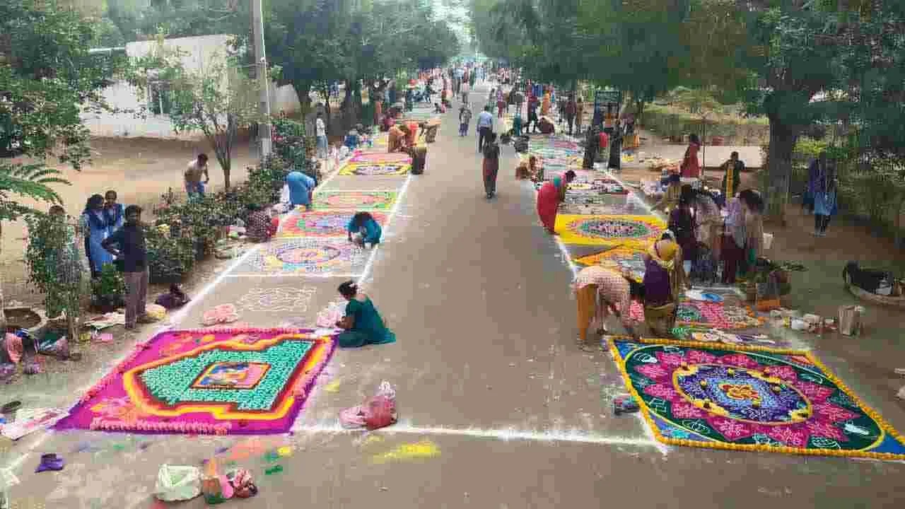ABN Andhra Jyothy Muggula Competition: ఒంగోలు QIS ఇంజనీరింగ్ కాలేజీలో ABN ఆంధ్రజ్యోతి ముత్యాల ముగ్గుల పోటీలు