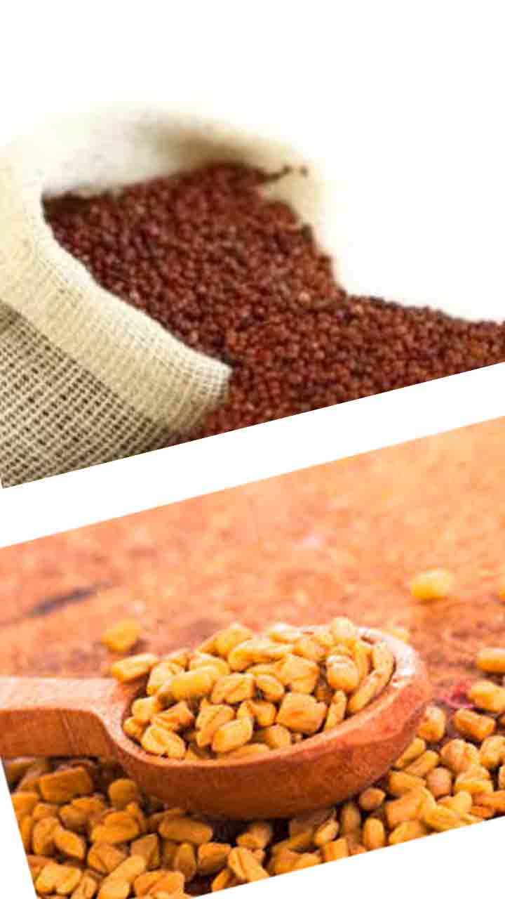 డయాబెటిస్ ఉన్నవారిలో బ్లడ్ షుగర్ లెవెల్స్ తగ్గించడంలో మెంతులు సహాయపడతాయి. రాగులు నెమ్మదిగా జీర్ణమై శక్తిని విడుదల చేస్తాయి.
