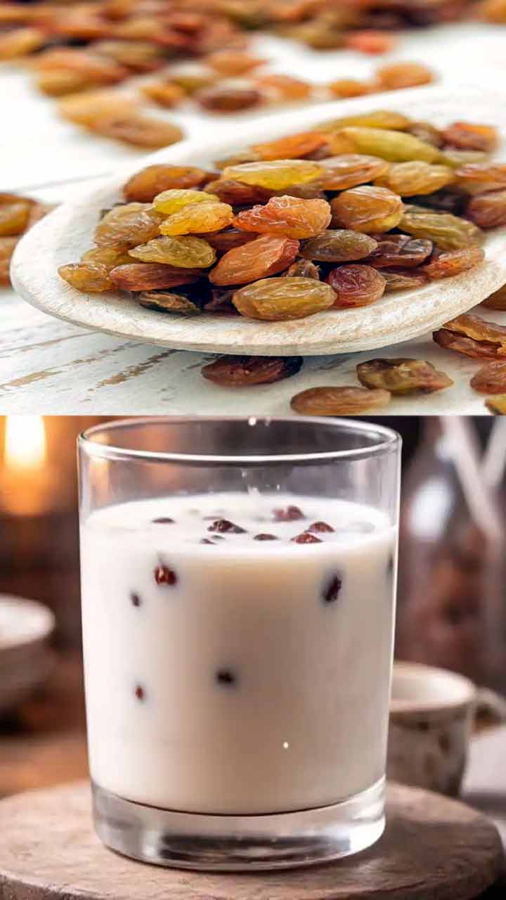 రాత్రి పడుకునే ముందు గ్లాసు వేడి పాలలో ఎండుద్రాక్షలను నానబెట్టాలి.