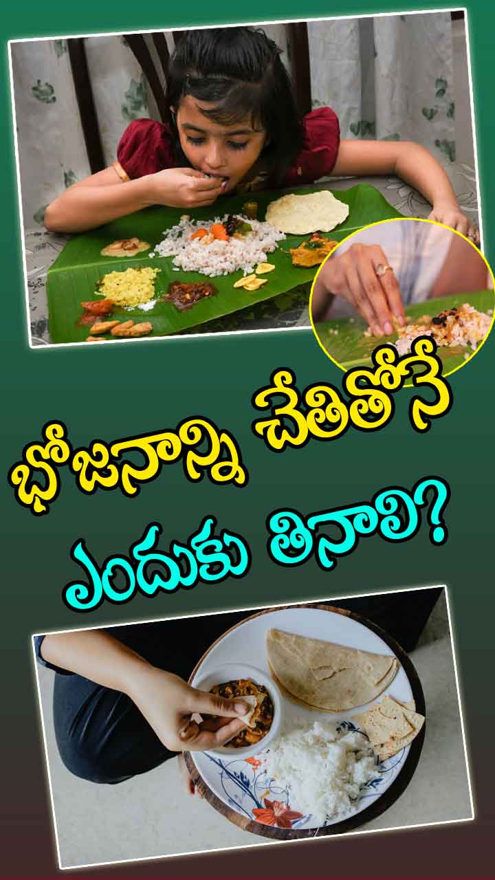 మన వేళ్లు పంచభూతాలకు ప్రతీకలు. కాబట్టి, వేళ్లతో కలుపుకుని భోజనం చేస్తున్నామటే ఈ పంచభూతాల అనుగ్రహాన్ని కోరుతున్నామని అర్థం.