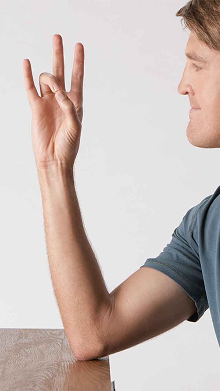 కుడి చేయి ముందుకు చాచి, అరచేయి నేలను చూస్తున్నట్టు పెట్టండి.