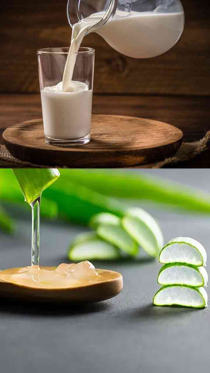 రాత్రి పడుకునే సమయంలో ముఖంపై పాలు, కలబంద మిశ్రమాన్ని రాసి, ఉదయం కడుక్కోవాలి.