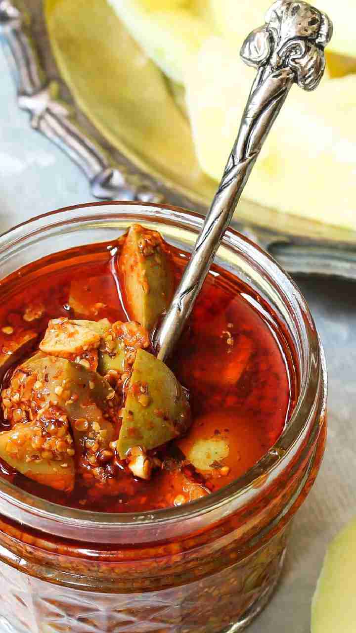 ఊరగాయను కలిపేటప్పుడు ఒకటి లేదా రెండు చెంచాల వైట్ వెనిగర్ లేదా ఆపిల్ సైడర్ వెనిగర్ కలపాలి