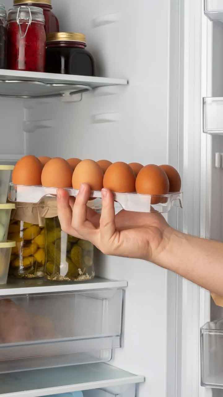 గుడ్లను ఫ్రిజ్ తలుపు దగ్గర కాకుండా, లోపల అత్యంత చల్లని ప్రదేశంలో నిల్వ చేయాలి.