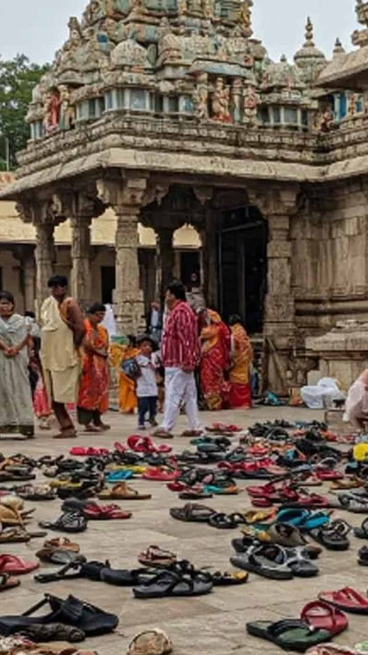 గుడిలోకి వెళ్లే సమయంలో చెప్పులు బయట విడిచి వెళ్తాం