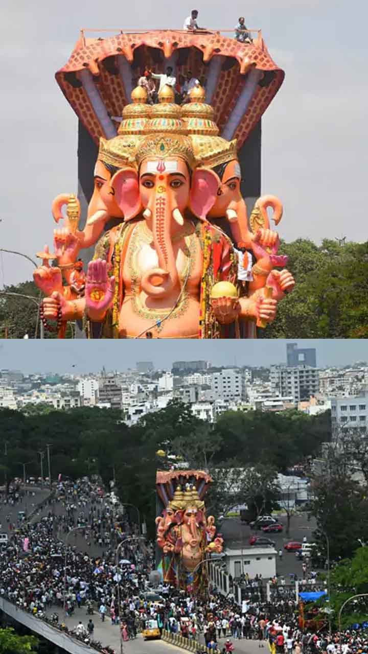ఉదయం ఐదున్నర గంటలకు చివరి పూజల అనంతరం ఖైరతాబాద్ వినాయకుడి శోభాయాత్ర ప్రారంభమైంది.